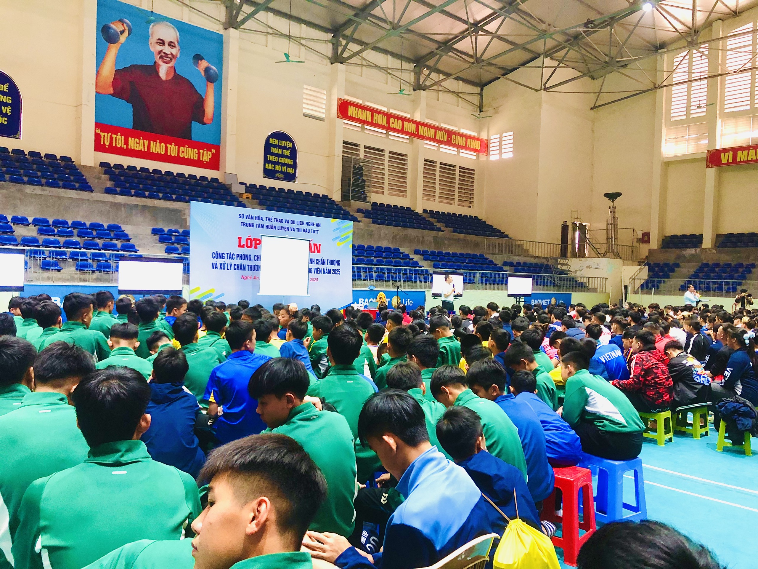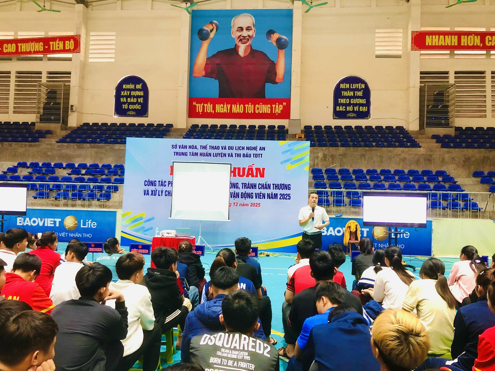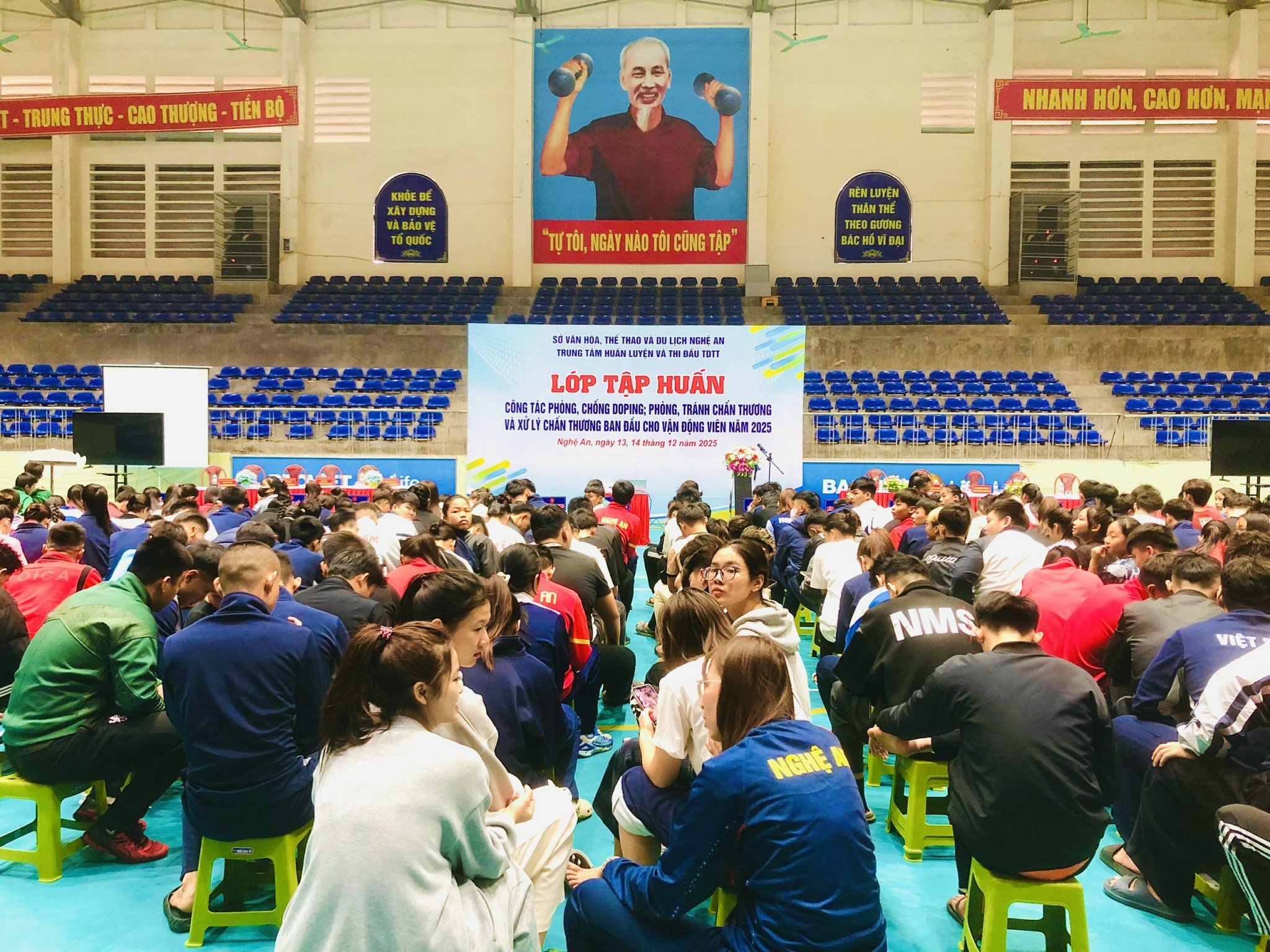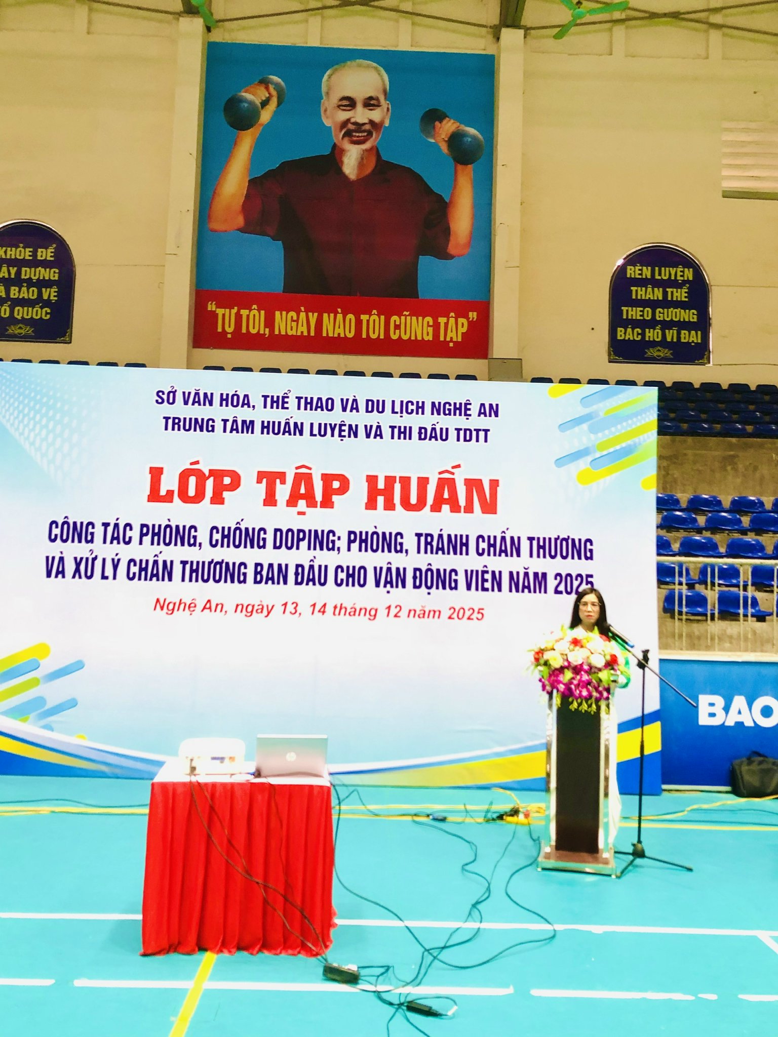 Thực hiện kế hoạch công tác chuyên môn năm 2025, ngày 13/12/2025 Trung tâm Huấn luyện và Thi đấu Thể dục thể thao tỉnh Nghệ An tổ chức khai mạc Lớp tập huấn về công tác phòng, chống Doping; phòng, tránh chấn thương và sơ cấp cứu ban đầu cho vận động viên.